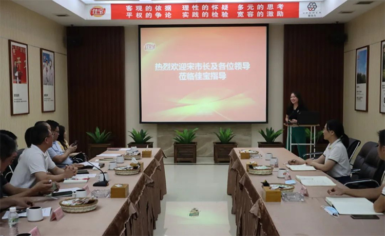調(diào)研期間,在佳寶集團(tuán)楊婉如女士陪同下領(lǐng)導(dǎo)們參觀了公司產(chǎn)品文化墻,了解佳寶集團(tuán)的產(chǎn)品、文化、發(fā)展歷史以及未來(lái)企業(yè)發(fā)展方向情況。